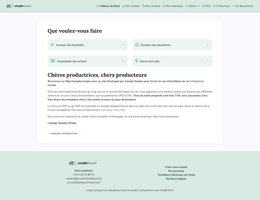 Plateforme d’exportation de vins : Sample Simple